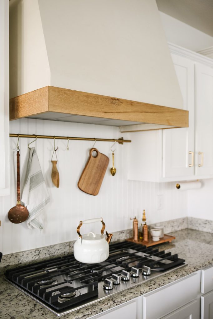 Last year, we added this range hood cover, and I am so glad we did! It gives our kitchen some warmth and interest, which I love. It definitely helped me love my kitchen a bit more.