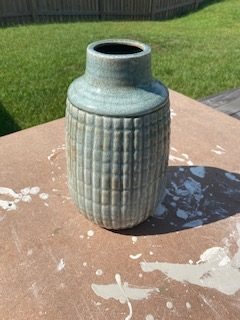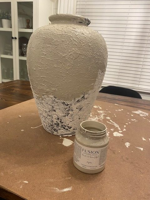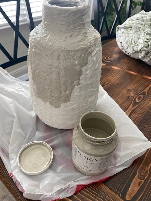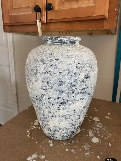 I love the shape of my other vase but I was not a fan of the indentation design. I used the same concept as above but I more so smudged on a thick layer of the joint compound to cover up the indentations.