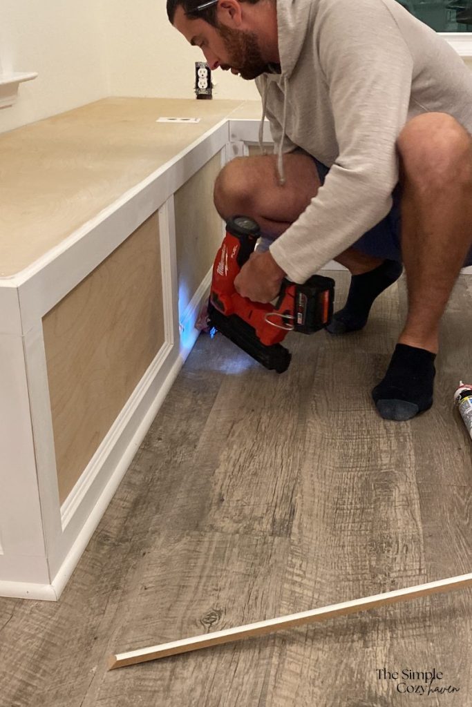 We finished the build by adding some base cap molding to tie it into the baseboards in our house.