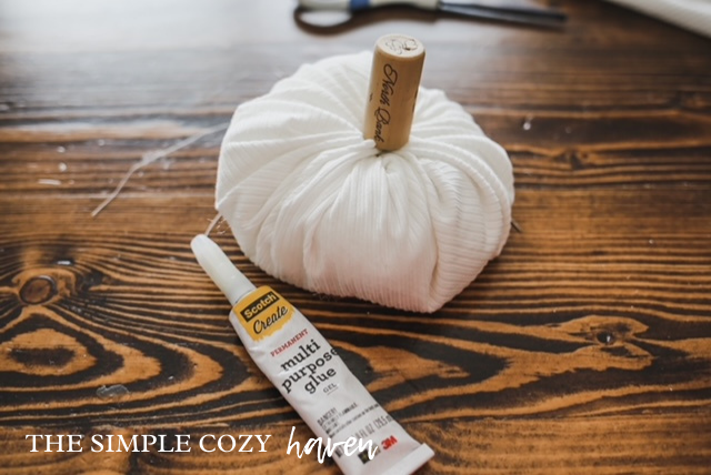 Time to attach your “stem”! I used some wine corks because I have an abundance of them! I used a multipurpose glue but you could totally use hot glue – I just couldn’t find my extra sticks of glue when I was doing this! LOL!