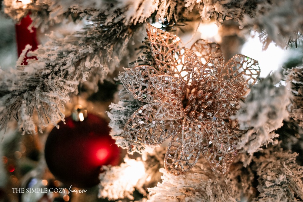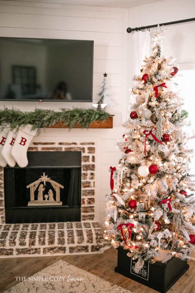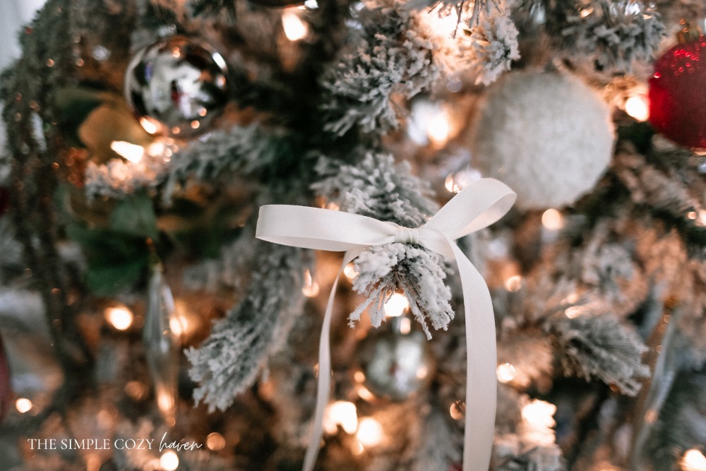 I kept my ornaments super simple with just some red, white and gold ornaments I have collected throughout the years. I tied ribbon on some of the tree branches and I love the feminine touch it added!